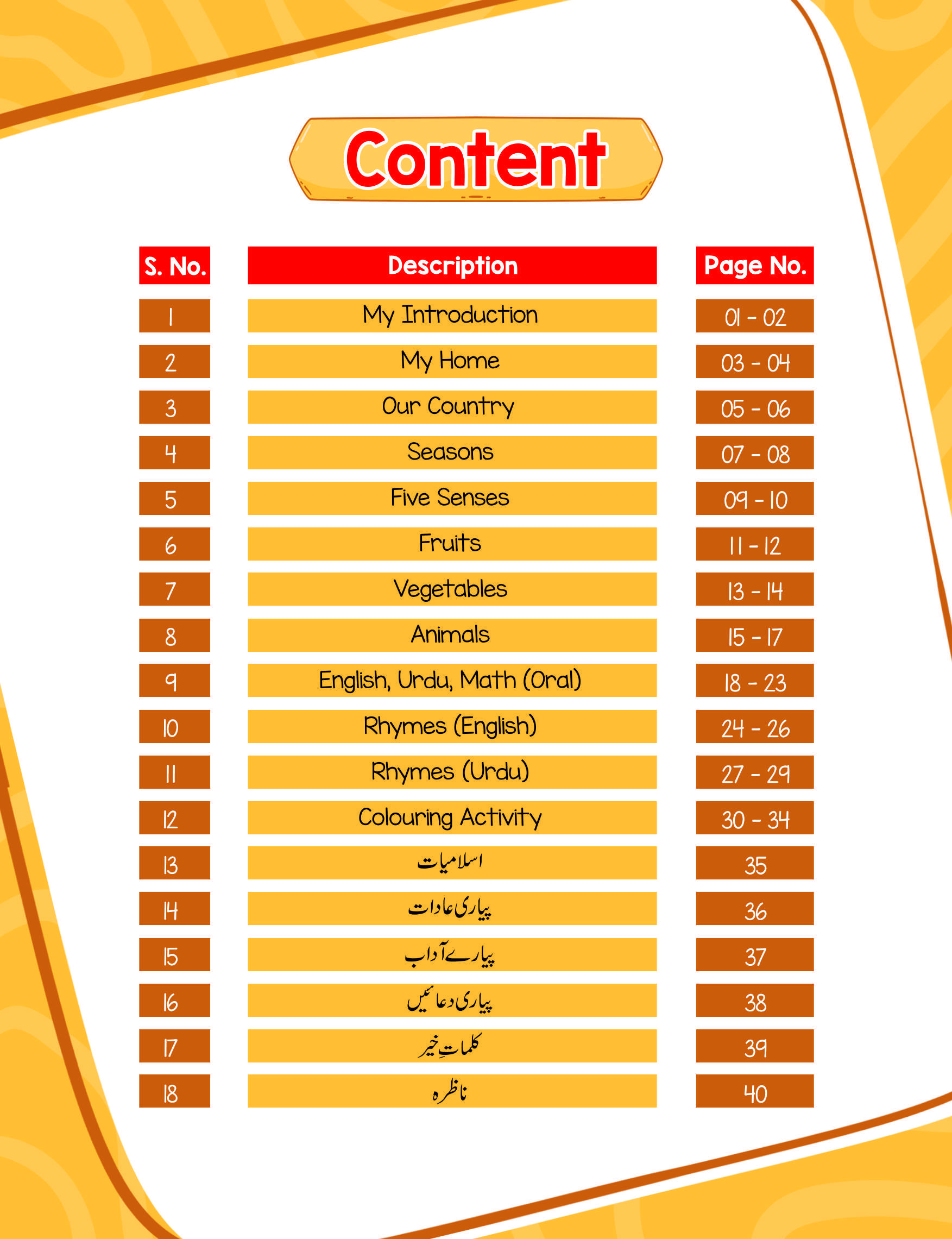 Explore, learn, and create with All in One Book! Packed with coloring pages, rhymes, fruit names, body parts, science activities, and basic Islamiat, this engaging book offers a fun, educational experience for young learners. Ideal for sparking creativity and expanding knowledge in a single, easy-to-use resource.