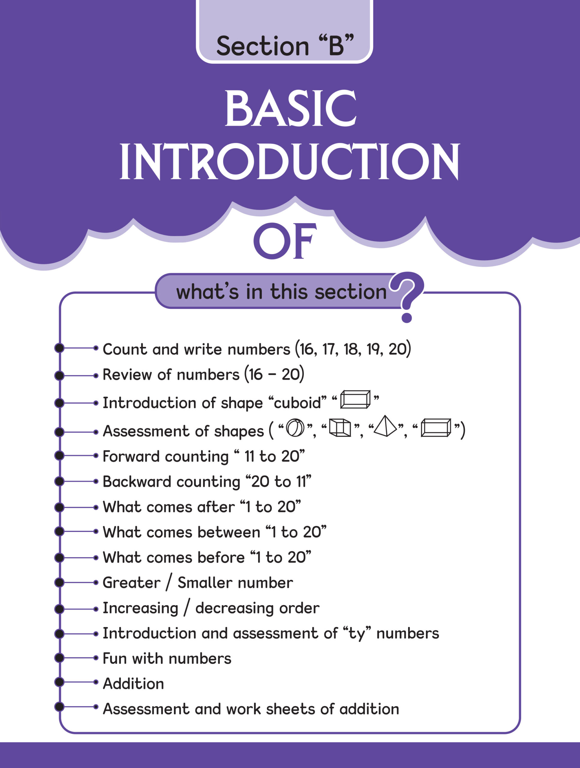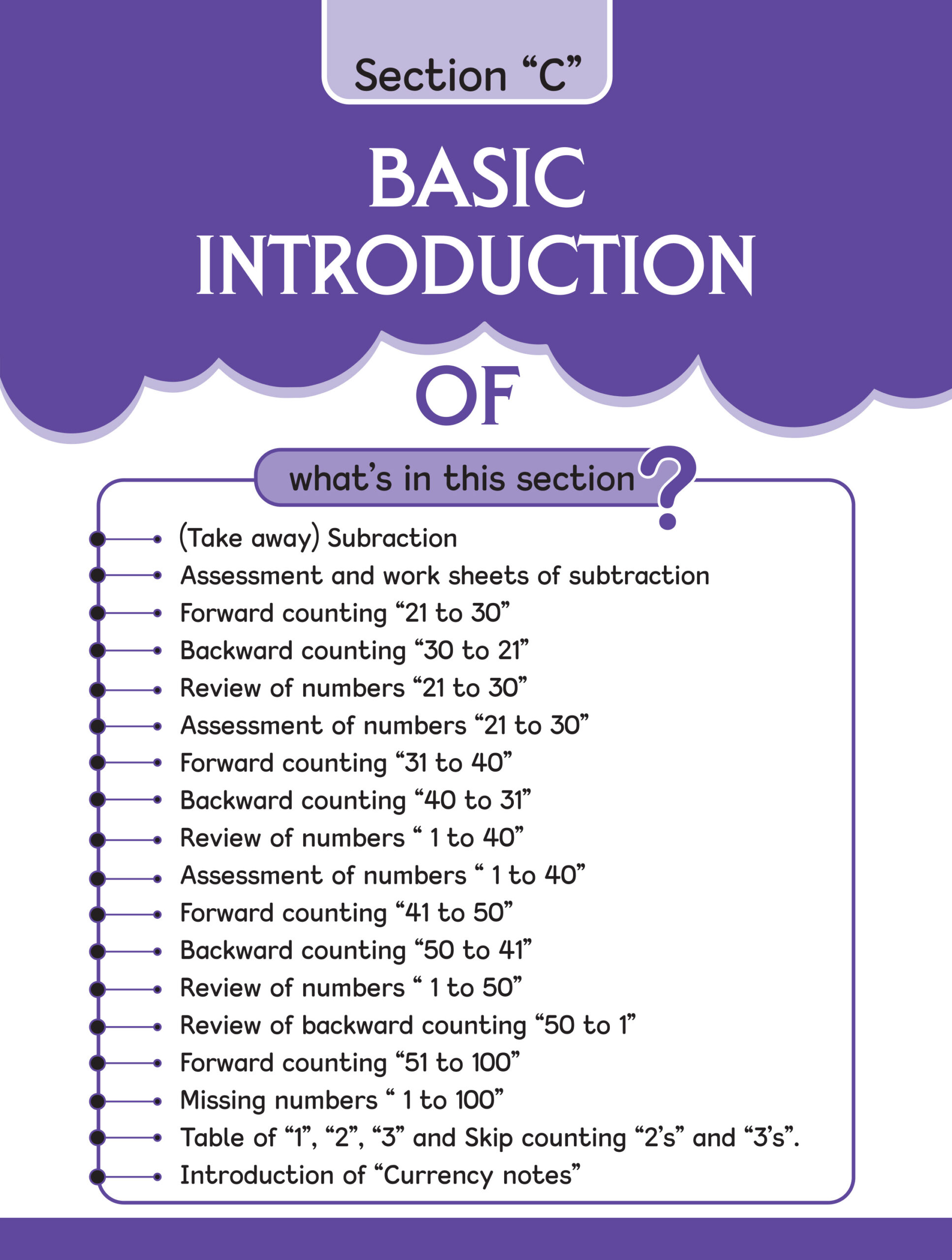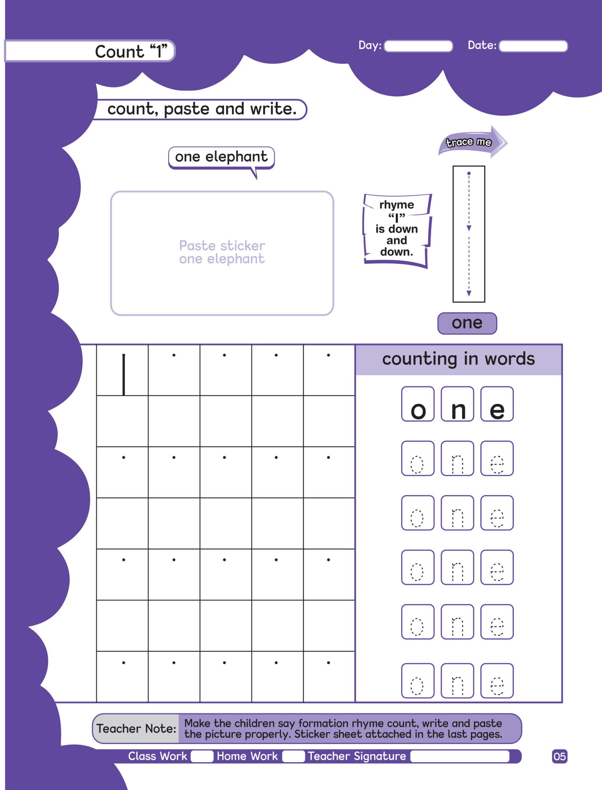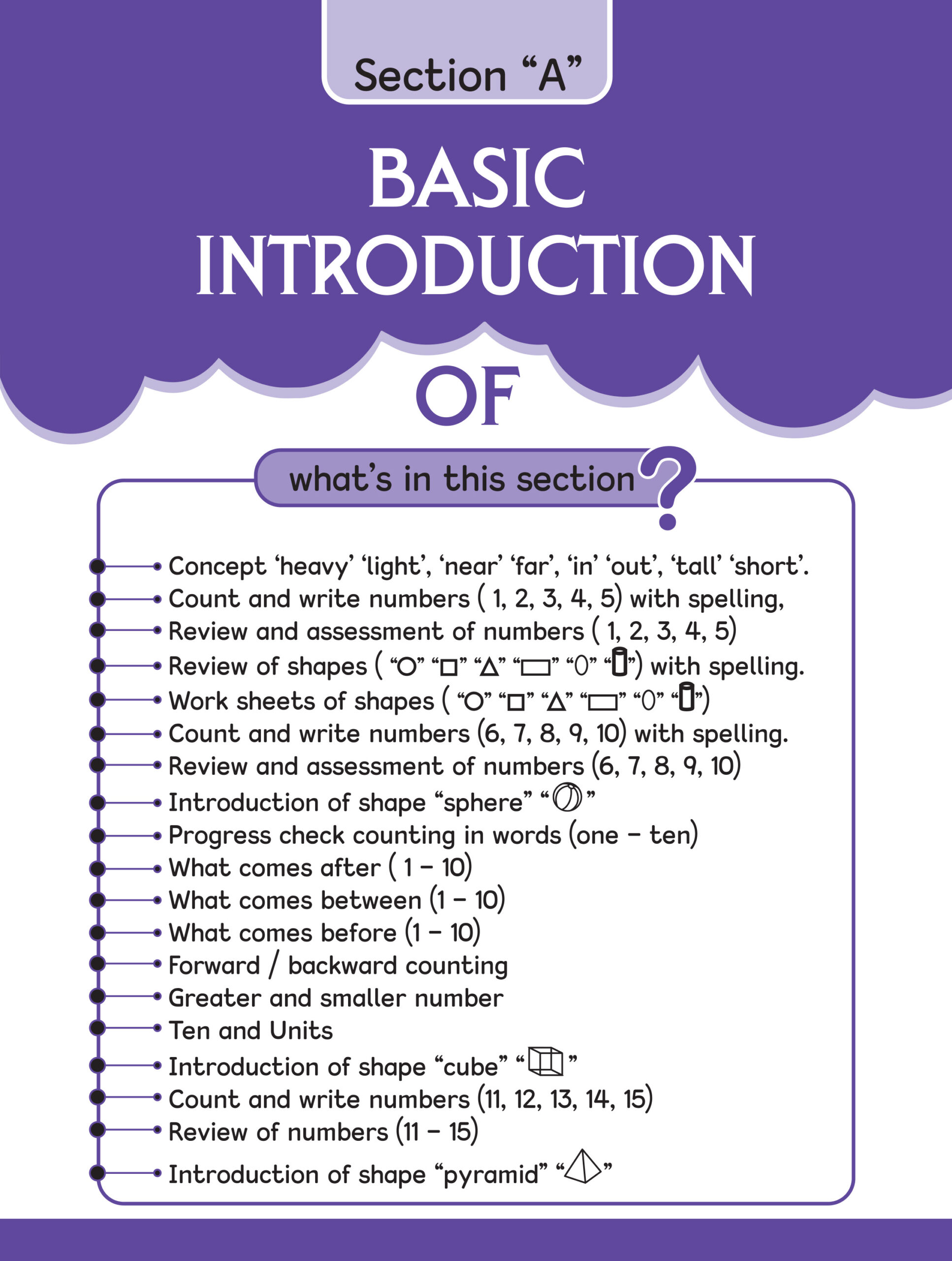 some salient festures of the copy series . To develop the creative skills of a child we have designed a “copy series” this series comprises 9 copies step (1) is meant for nursery class. In the copy step(1) touch & feel the sound its mean sensorial page . tarce and pattern and colour the object . step(2) is meant for kg1 class and step(3) is meant for kg2 class . work sheets sticker pasting